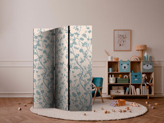Biombo - En el Jardín Botánico - Flores, Pájaros y Mariposas - Ilustración Colorida