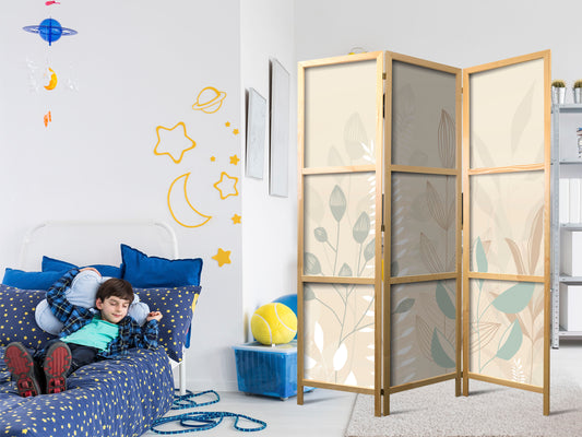 Biombo - Mañana en el prado - Varias plantas en tonos pastel sobre fondo beige