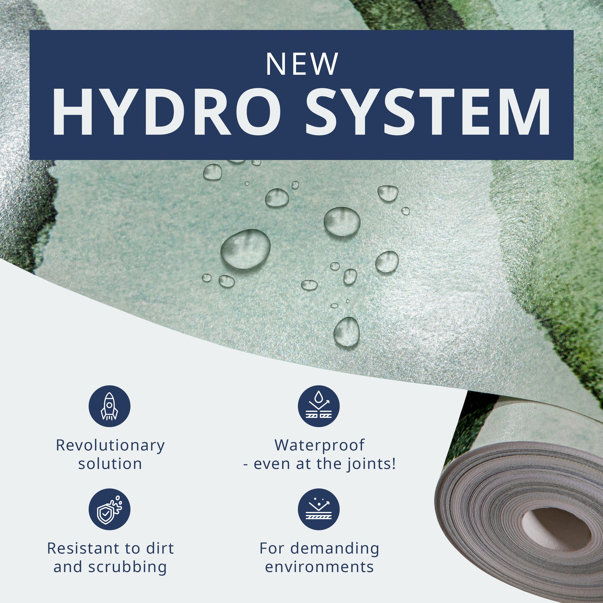 - Waterproof: Non-woven fabric with a grammage of 170 g/m² Premium combined with the innovative HYDRO system in the form of acrylic varnish, roll width 50 cm.