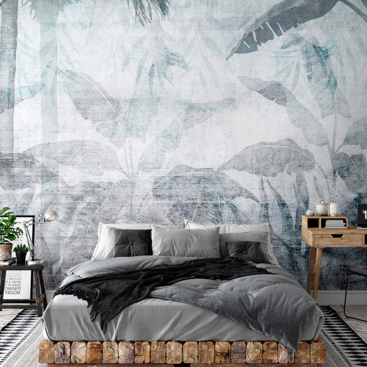 Fotomural - Jungla desaparecida - paisaje de naturaleza exótica en tonos azules
