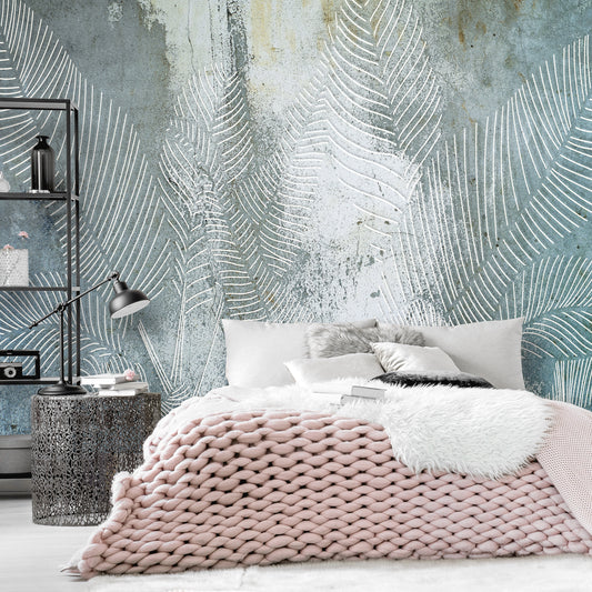 Fotomural - Composición en azules y blancos - Ondas abstractas armoniosas en un tono de color frío